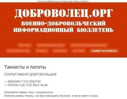"Доброволец.орг" ще хоче танкістів Т-72 з досвідом і без досвіду роботи, а також пілотів навчально-тренувальних та навчально-бойових літаків Л-29 і Л-39, вертольотів Мі-2 і Ка-26.