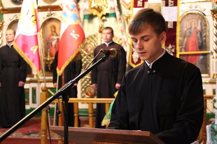 Богослужіння очолив митрополит Луцький і Волинський Михаїл, з ним служили: вікарій єпархії єпископ Володимир-Волинський Матфей, канцлер єпархії протоієрей Микола Цап, ректор ВПБА протоієрей Володимир Вакін, викладачі та студенти у священичому сані.
