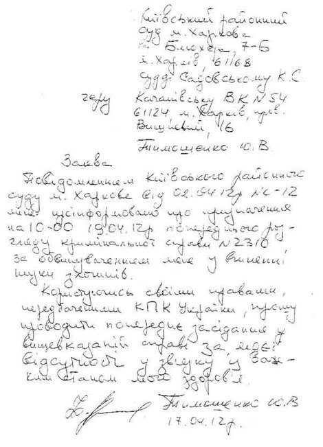 При цьому він підкреслив, що, на думку лікарів німецької клініки «Шаріте», стан здоров'я екс-прем'єра не дозволяє їй брати участь у судовому процесі.