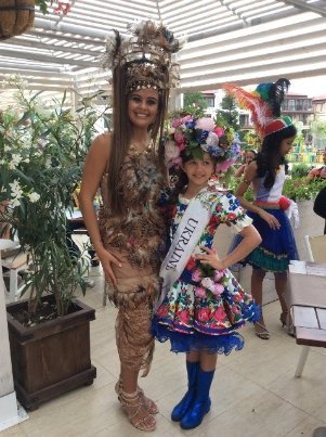 Також конкурсанти мали змогу продемонструвати національні костюми своїх країн. Аня в українському костюмі та розкішному вінку була просто неперевершеною.