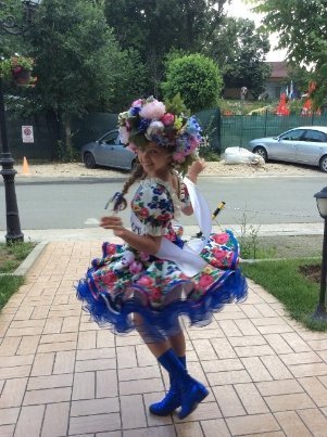 Лучанка презентувала членам журі костюм «Морська планета». На голові у дівчинки красувався корабель, а сукня складалася із двох частин – корсета, який символізував пісок, та спідниці, яка нагадувала морські хвилі та була розшита натуральними раковинками і морськими зірками. До речі, втілити ідею цієї сукні в життя Анюті Климовець допомогла креативний дизайнер із Луцька Ірина Тимчук.