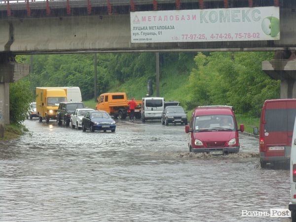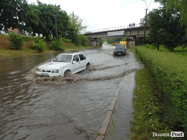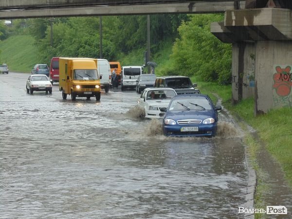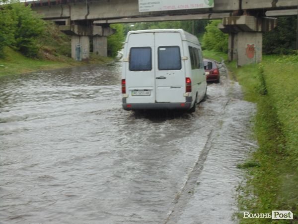 Одне з них з’явилося під мостом на вулиці Карпенка-Карого поблизу перехрестя із вулицею Дубнівською. Не всі автомобілі наважувалися переїхати цю калюжу, багато водії вирішували об’їхати вулицю.