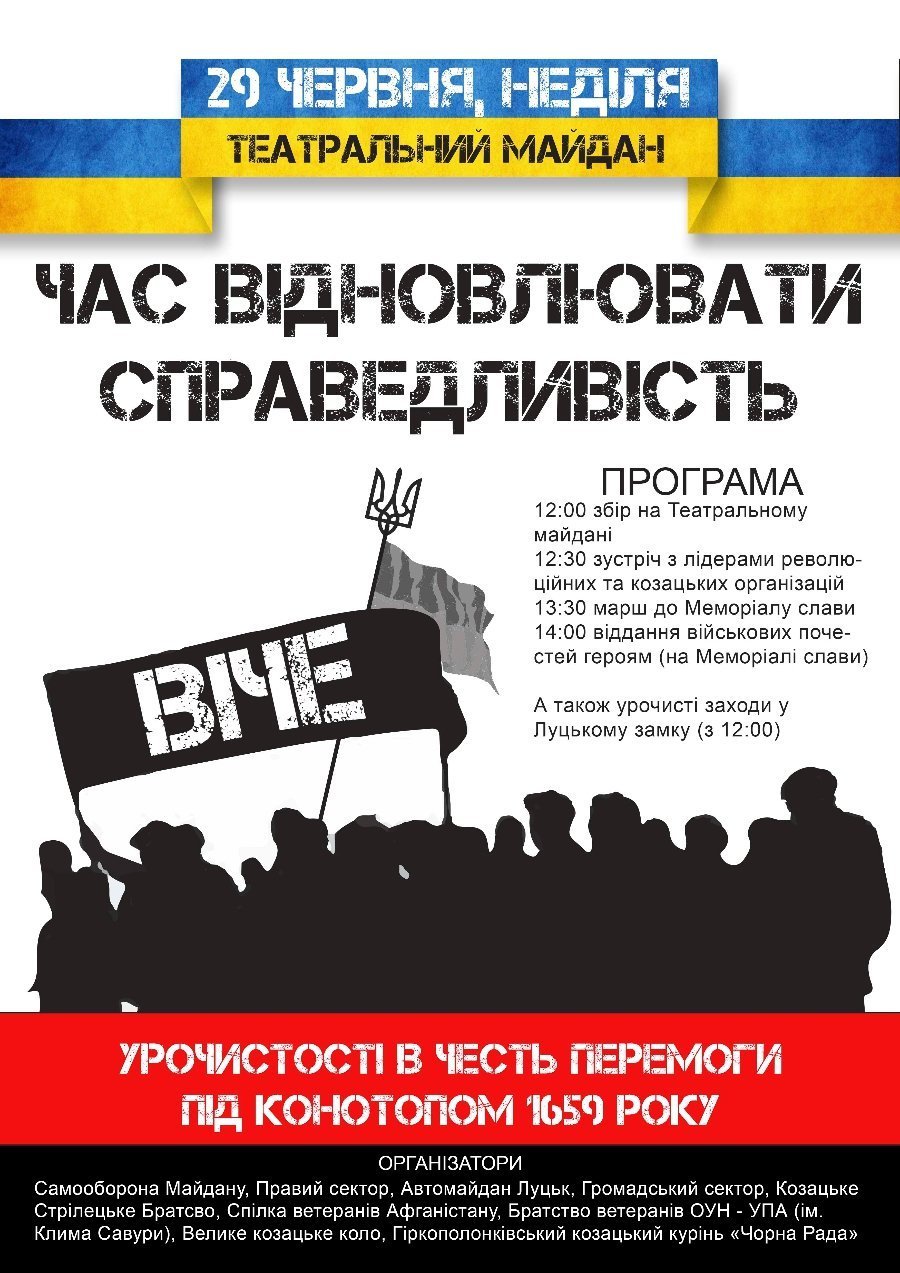 У Луцьку відбудеться народне віче "Час відновлювати справедливість".