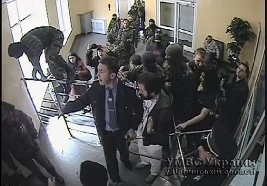 Близько 12-ї години у приміщення УМВС України у Волинській області увірвалося кілька десятків представників «Правого сектора» в камуфляжах та балаклавах.