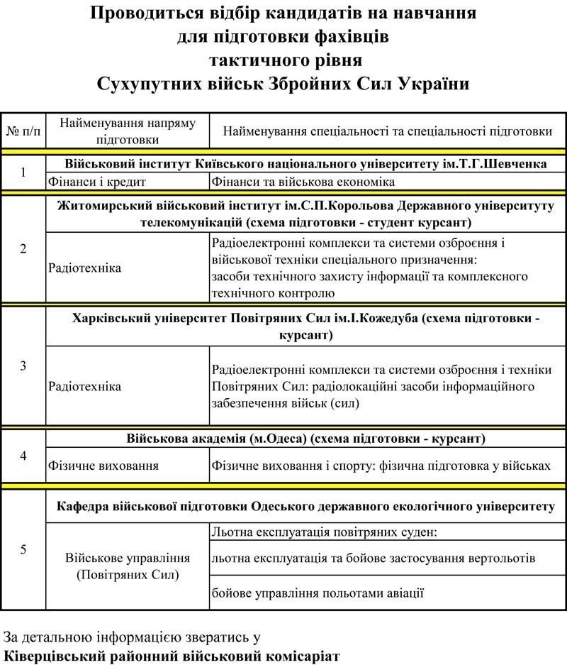 Щоб отримати відстрочку від призову в армію, потрібно до 31 липня подати заяви про вступ на навчання до професійно-технічних та вищих навчальних закладів.