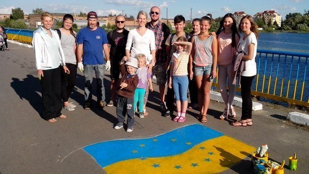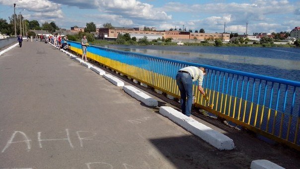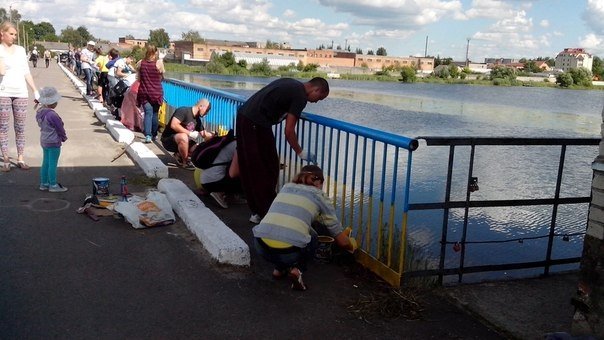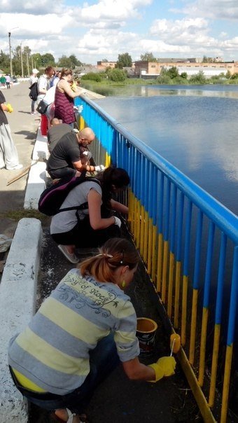 "27 червня о 16.00 у м. Ковелі відбулася патріотична Акція у підтримку України та української армії (розфарбовували пішохідний міст через річку Турію, в районі дамби, у кольори державного прапору)!" - повідомив користувач Едік фан Кестерен.
