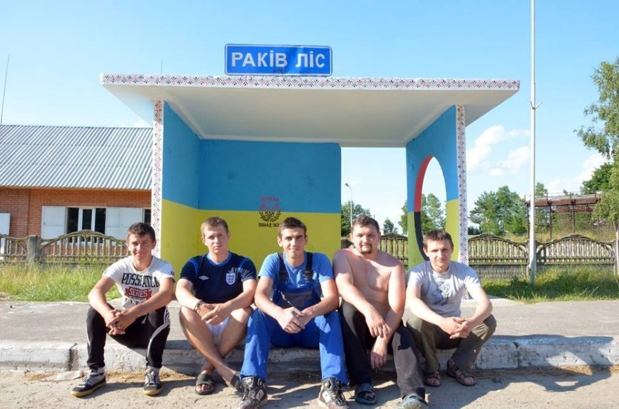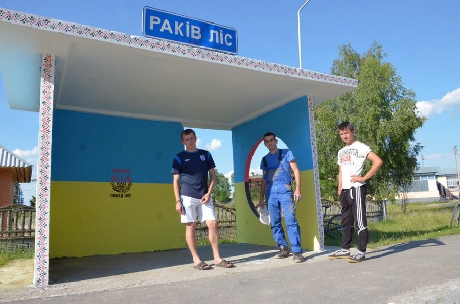 У День Конституції України молодь села Раків-Ліс Камінь-Каширського району Волині розфарбувала автобусну зупинку в центрі села в кольори державного Прапора України.