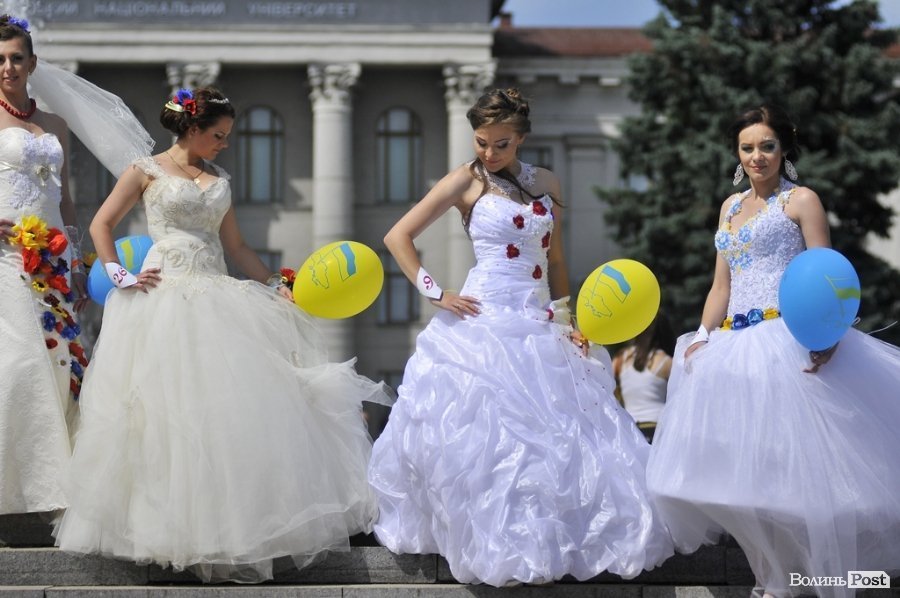 У Луцьку відбувся уже традиційний Парад наречених: своєрідний конкурс красивих дівчат у весільних сукнях. Цьогоріч від пройшов вчетверте.