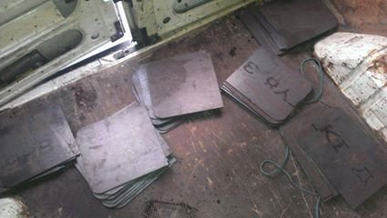 Металеві пластини у бронежилеті використовують українські або німецькі. "Самооборона" закупила листи металу, самостійно їх ріже і вставляє в "народні" бронежилети.