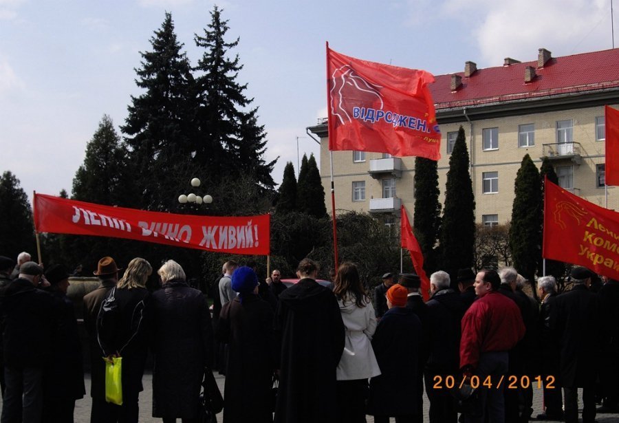 В обідню пору 20 квітня кілька десятків прихильників комунізму зібрались у центрі Луцька, біля фонтанів на проспекті Волі, де колись стояв пам’ятник вождю пролетарів.