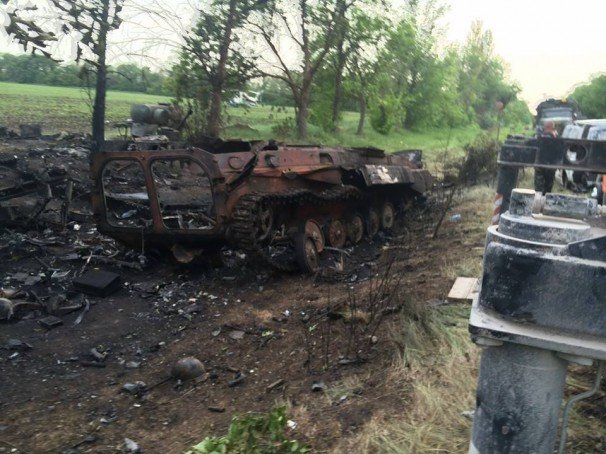 На місці загибелі бійців під Волновахою стоять жалобні вінки, в зоні АТО купа розтрощеної техніки, подекуди лежать тіла вбитих терористів.
