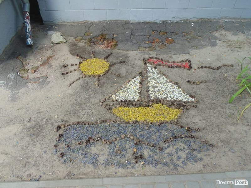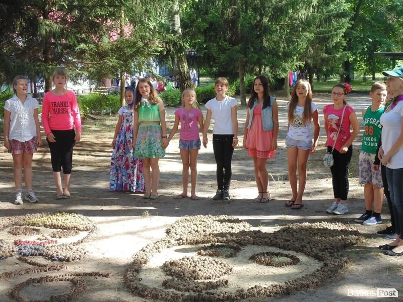 До приїзду посадовців у таборі провели «день шишок» - діти викладали на землі із них різні фігурки.