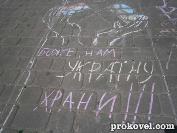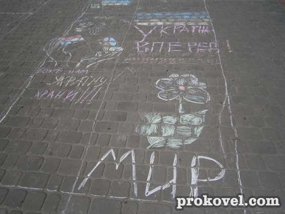 Про це красномовно говорять їхні малюнки, які дітвора, з нагоди Дня міста та 70-ї річниці визволення від німецьких загарбників, зобразила на асфальті. Художнє дійство носило назву «Мій Ковель – це моя Україна!».