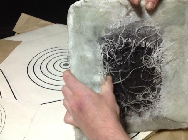 Активіст "Самооборони Волині" Дмитро Сандалов розповів, яким чином заміняють кевларове покриття, яке захищає бійця від осколків, що відбиваються від бронепластини. У своїй майстерні він обмотує плиту десятьма шарами скловолокна.