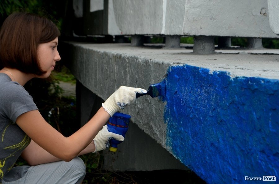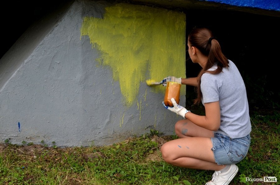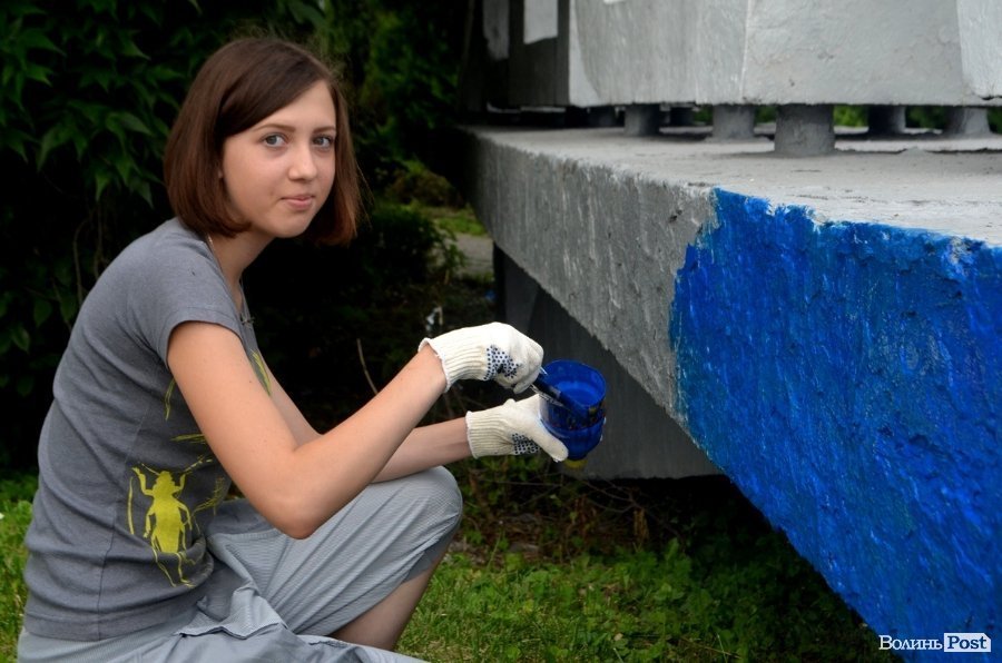 Лучанка Настя Кичук каже, що вже другий день працює над розмалюванням знака.