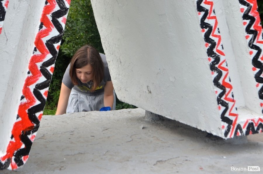 «Всі розмальовують в синьо-жовті кольори, а мені захотілося чогось оригінальнішого. Тому я придумала, що тут буде червоно-чорний орнамент», - каже Настя Кичук.
