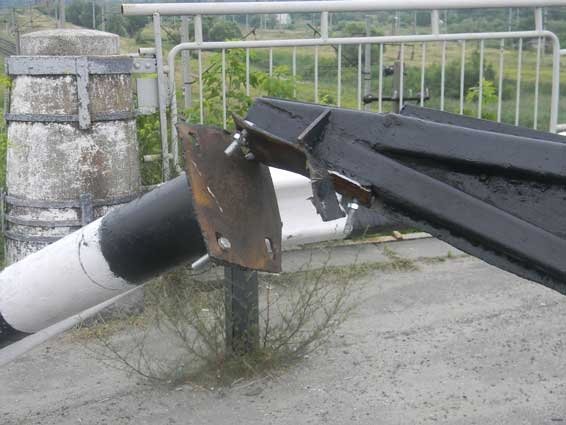 Працівники автомобільної інспекції, які оглядали місце події, стверджують, що вони не виявили ні залишки фарби, ні осколки скла, ні гальмівний шлях можливого порушника, який би зачепив та зніс цей обмежувач висоти.