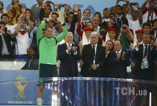 Першим доторкнувся до заповітного трофею - Кубка світу, - капітан німецької команди Філіпп Лам. Він отримав нагороду з рук президента ФІФА Йозефа Блаттера.