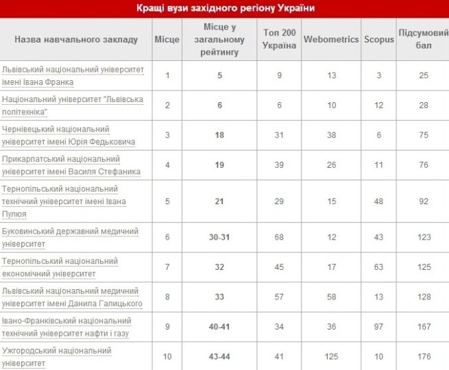 а де ж "кращі вузи західного регіону"? схема неповна, отже - необ'єктивна! вперше чую про "Кременчуцьку національну академію", це колишнє ПТУ?