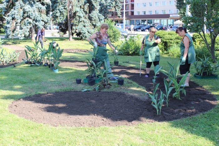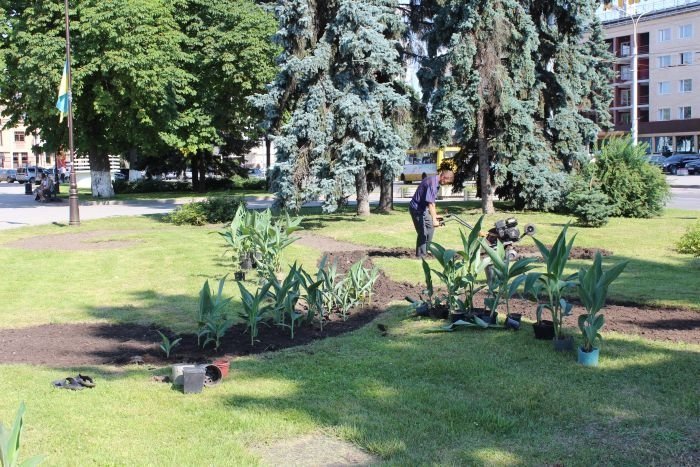 Уже висадили квіти на вулиці Лесі Українки, біля пам’ятника Лесі Українки. Тривають роботи на Театральному майдані. З четверга нові квіткові барви з’являться на проспекті Волі.
