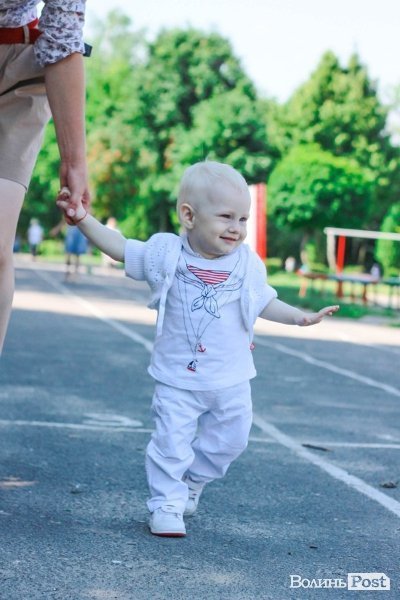 Валерію ж одягають зважаючи на погоду, зазвичай у штани та футболки: «Обираємо такий практичний одяг, бо ми ще частенько падаємо, а тому платтячка нас чекають попереду», - ділиться мама Ірина.