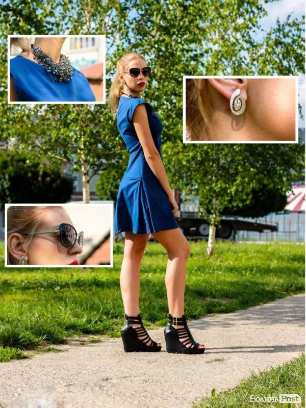 Щодо аксесуарів, то намисто хоча масивне, але надає ніжності. Сумка легка, до якої підходить браслет. Сережки нейтральні та не привертають на себе уваги.