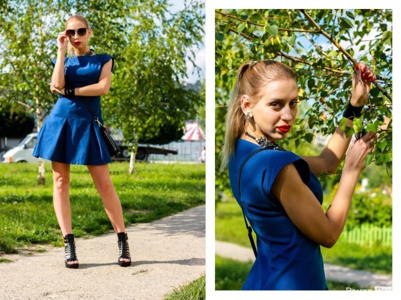 На фото Ксюша одягнена у сукню від Ріти Біляєвої, взута у босоніжки LEA-GU. Образ доповнюють окуляри Dolce & Gabbana, сумка, сережки від ZARINA, та персні.