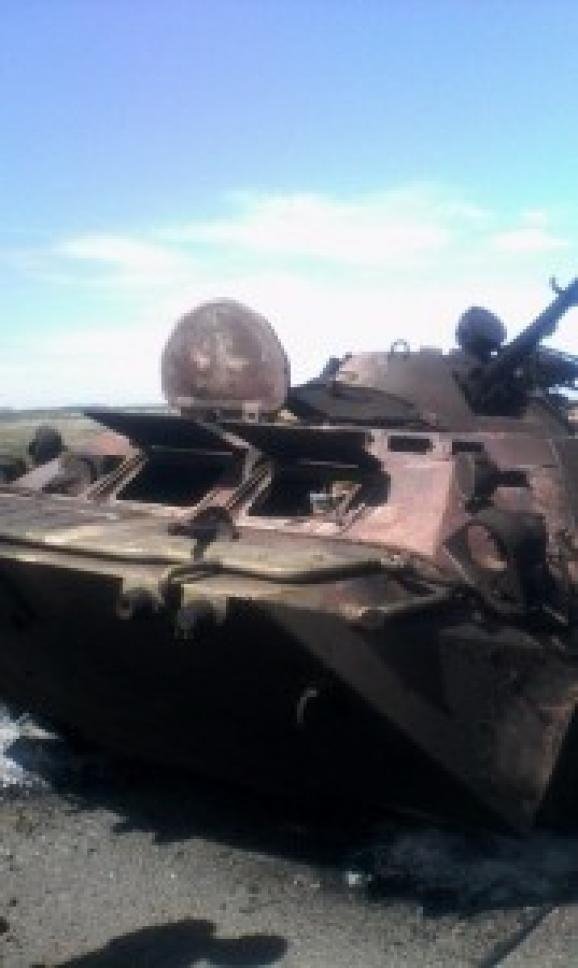 Залишки обгорілої техніки та чотирьох чоловіків у військовій формі виявили 16 липня на перехресті автодоріг Н-21 «Луганськ-Лутугине» і Е-40 «Луганськ-Аеропорт».