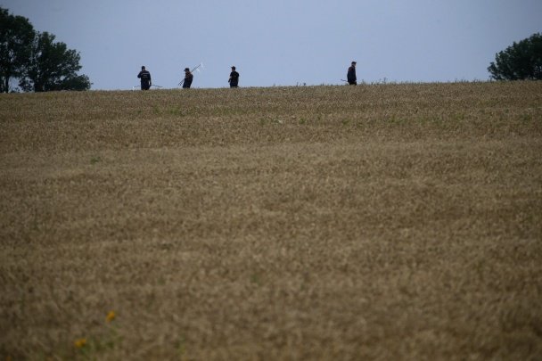 Уламки розбитого літака розлетілися на кілометри, а у полі можна побачити частини тіл загиблих та їхні зуби. Біля знайдених трупів рятувальники ставлять білі прапорці з позначками.