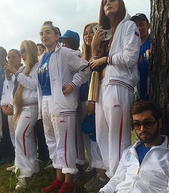 Білі спортивні костюми з російським триколором вдягли усі конкурсанти, як видно зі світлин на сторінці конкурсу, - пише Еспресо.TV з посиланням на "Таблоїд".