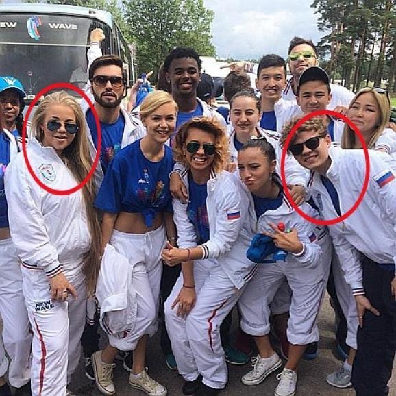 Українські учасники міжнародного конкурсу "Нова хвиля" в Юрмалі Вікторія Петрик та В’ячеслав Рибіков одягнули на себе спортивну форму із зображенням російського прапору.