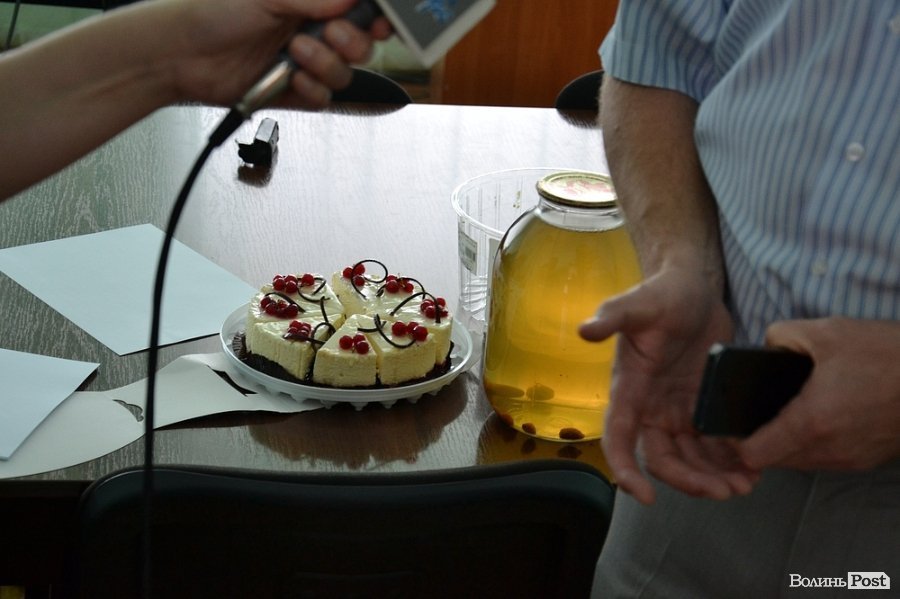Щоб пригостити колег у кабінеті роботи постійних комісій міськради він приніс компот, торт та коньяк.