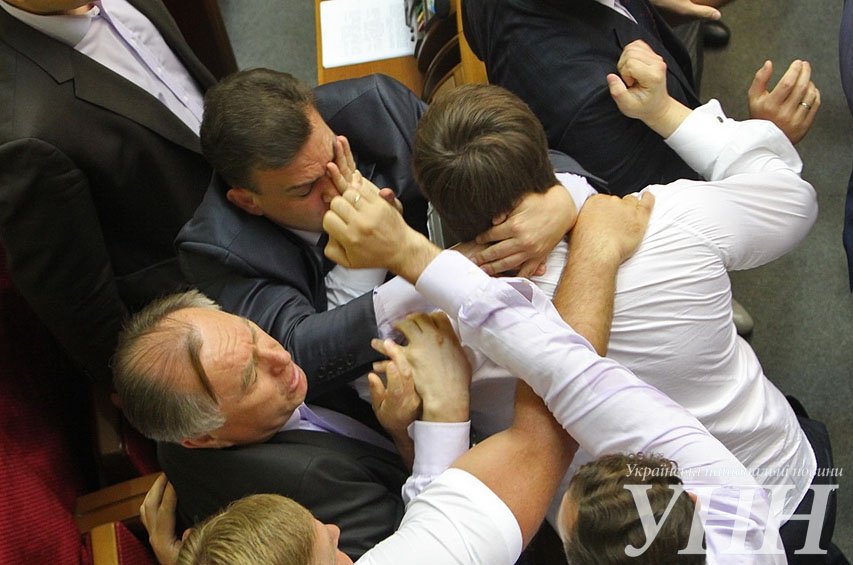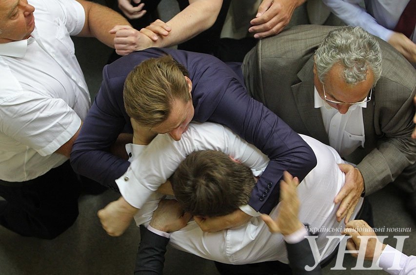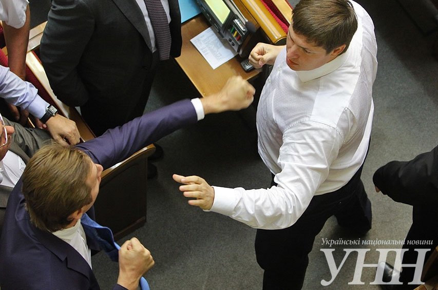 Серед найактивніших бійців зі "Свободи" відзначилися Олександр Мирний, Ігор Мірошніченко, Олексій Кайда та Ігор Сабій. Нардепи з інших фракцій з посмішками спостерігали за тим, що відбувається.