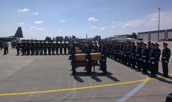 Після жалобного мітингу й хвилини мовчання солдати почесної варти занесли труни в літак.