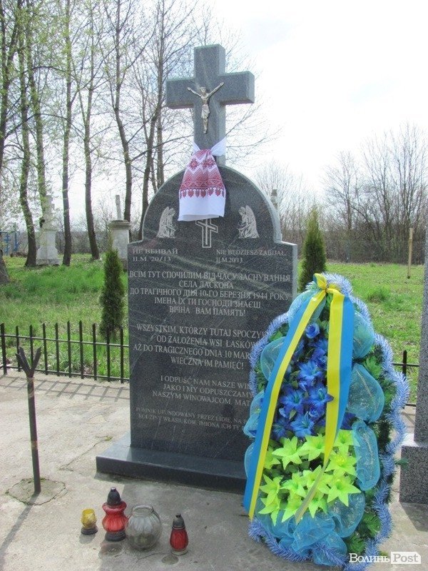 Масові вбивства українців відбувалися і в інших селах, серед яких – Модринь і Ласків, куди у поминальні дні завітала делегація волинських владців і журналістів. Вони пов’язали рушники, поставили вінки на могилах.