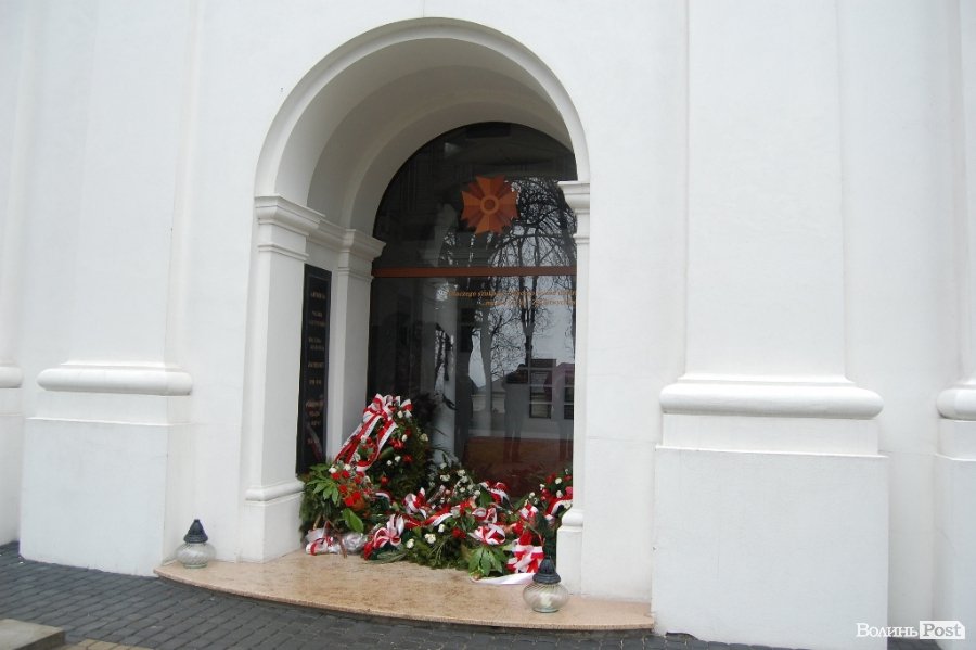 Проте до сьогодні стіна цього будинку не облаштована хоч якимось кріпленням для вінків і квітів. Тому волиняни, які минулого четверга приїхали до Холма, мусили просто поставити корзину квітів на тротуар під меморіальною дошкою.
