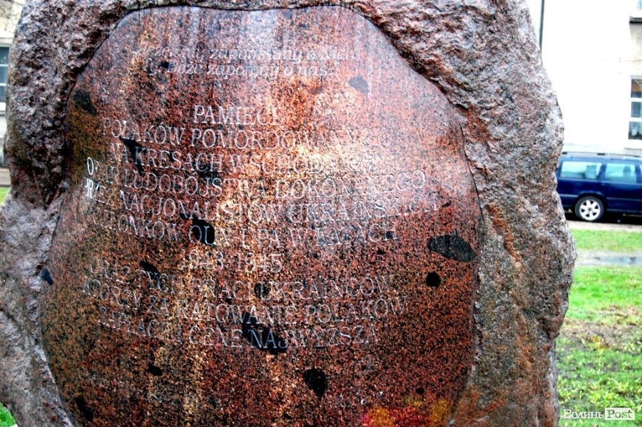 Волиняни мали змогу побачити не один приклад того, як поляки увічнюють у камені неоднозначний і досі дискусійний українсько-польський конфлікт часів Другої світової війни – трагічні події, коли військові конфлікти польської Армії Крайової з УПА часто переростали у масові вбивства мирного населення – цілих родин і навіть сіл, як польських так і українських.