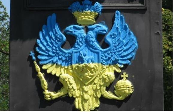 Невідомі пофарбували двоголового орла на пам'ятнику на місці відпочинку Петру I в Полтаві в кольори державного прапора.