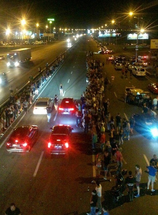Як підсумок від Південного мосту до Бориспільської траси утворився величезний затор. При цьому на місці нелегальних гонок були помічені і співробітники ДАІ, які ніяк не реагували на очевидне порушення.