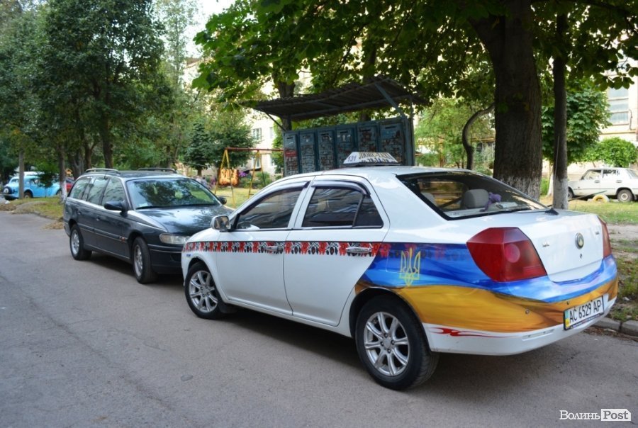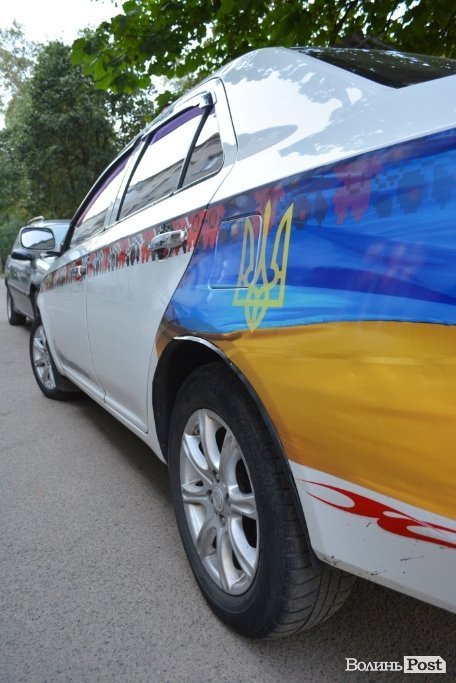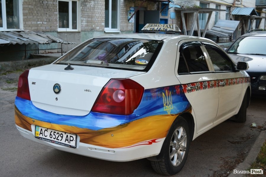 Власник білої колоритної Geely Микола Бондя, що працює у «Люкс-таксі», у коментарі ВолиньPost’у розповів, що якось побачив у місті «жигулі» зі схожою символікою, тому й вирішив зробити щось подібне на власному авто.