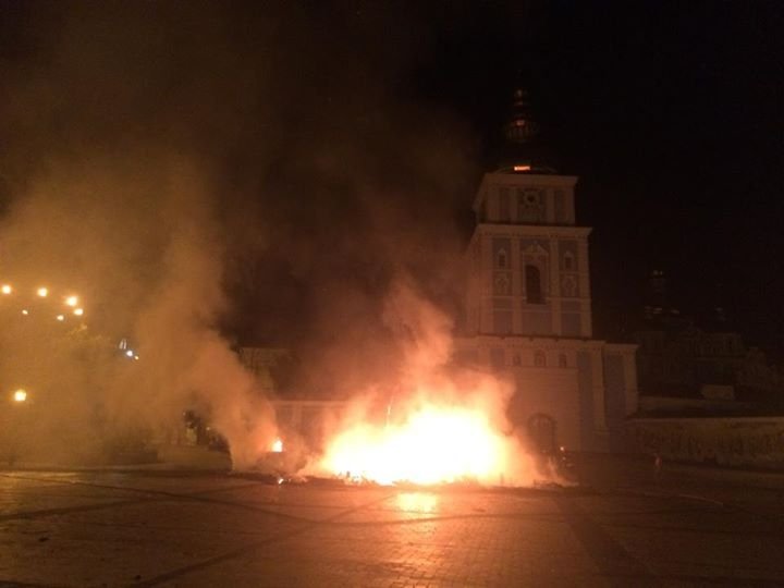 Цієї ночі в центрі Києва на Михайлівській площі невідомі підпалили намети.