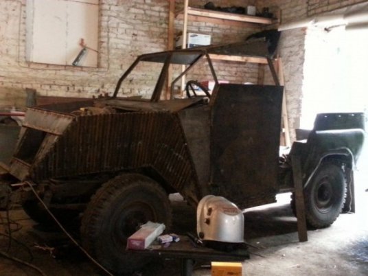 Ентузіасти з Києва, які захоплюються військовою технікою, переробили "бобика" в броньований ган-трак.