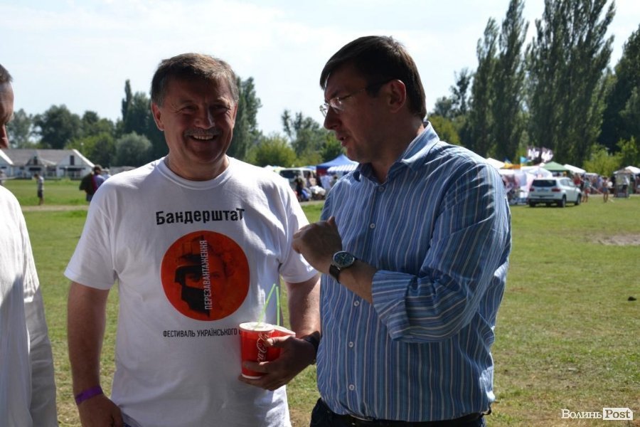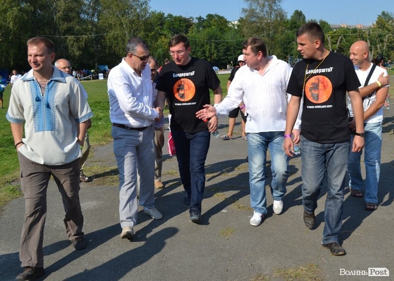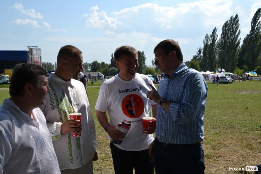 Зіркового гостя Юрія Луценка проводять із фесту і екс-губернатор Володимир Бондар, і екс-мер Богдан Шиба, і начальник луцької міліції Ігор Муковоз, і заступник голови Волиньради Ігор Гузь.