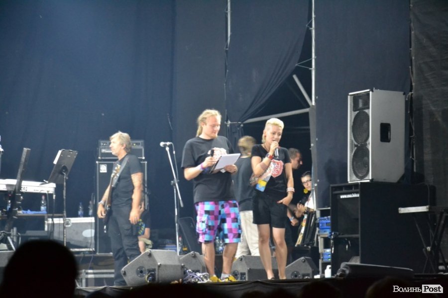 На сцені розігрується Сашко Положинський зі "збірною" луцьких музикантів.