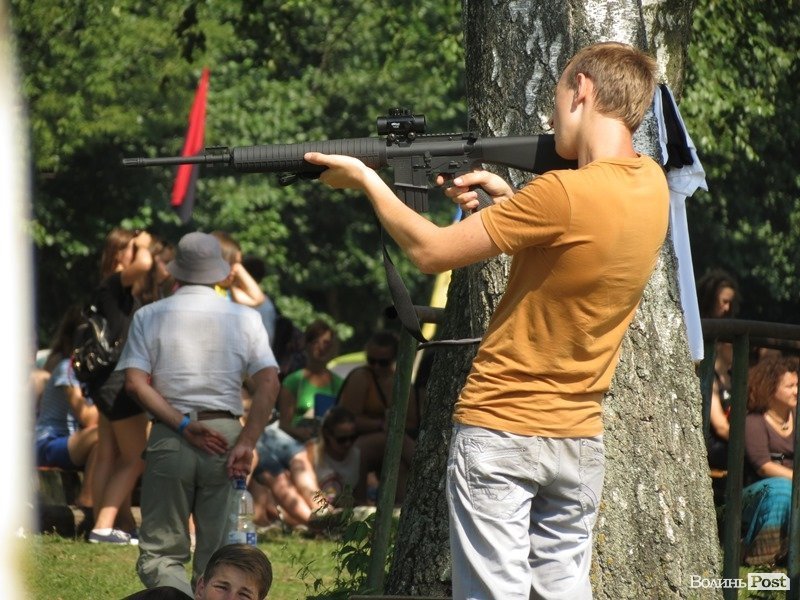 Символічно, що на фоні - за сценою - можна повчитися постріляти з "пневмату".