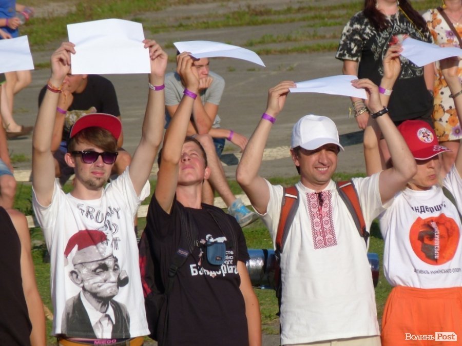 Сашко Положинський попросив фестивальників помовчати, аби таким чином виявити шану загиблим бійцям.