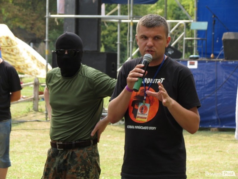 Ігор Гузь представив наступного учасника гутірки - бійця білоруського батальйону "Пагоня. Активіст - в балаклаві, окулярах. Голос його змінено. Гузь стверджує, що протягом фестивалю до організаторів неодноразово дзвонили білоруські "органи".