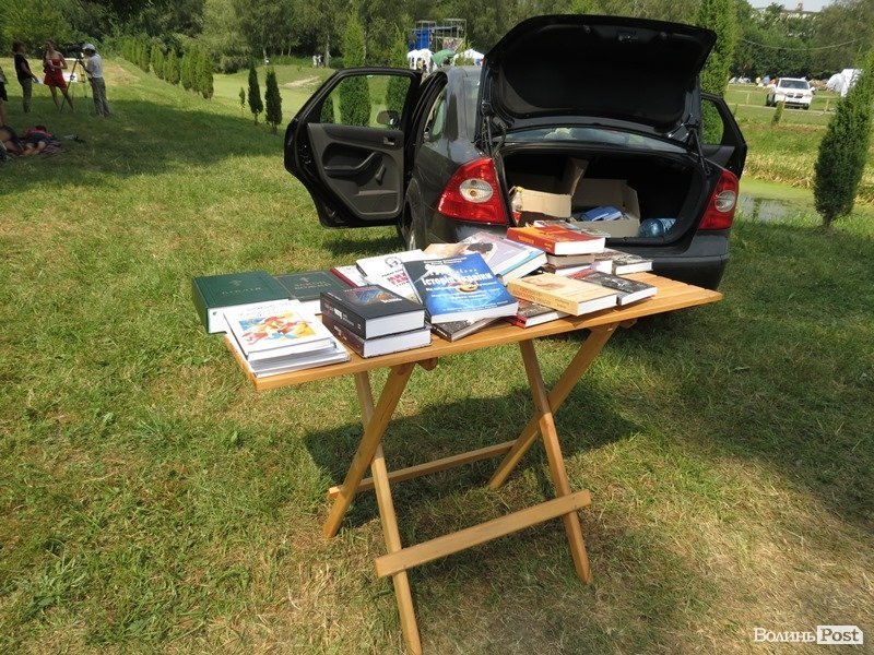 Екс-очільник Волинської обласної друкарні Дмитро Головенко привіз на фест книжки. Продає особисто.