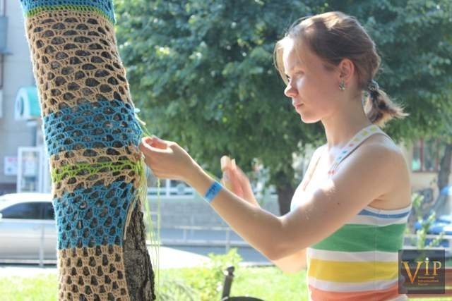 На всі дерева в’язальникам не вистачило сил і часу. Проте невдовзі вони прикрасять сквер повністю. Варто зауважити, що на одне дерево потрібно 5-6 мотків ниток.