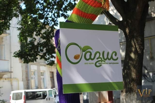 Біля прикрашених дерев представники кав’ярень та інших організацій і установ розмістили столики з рекламною продукцією та ласощами, якими частували перехожих.
